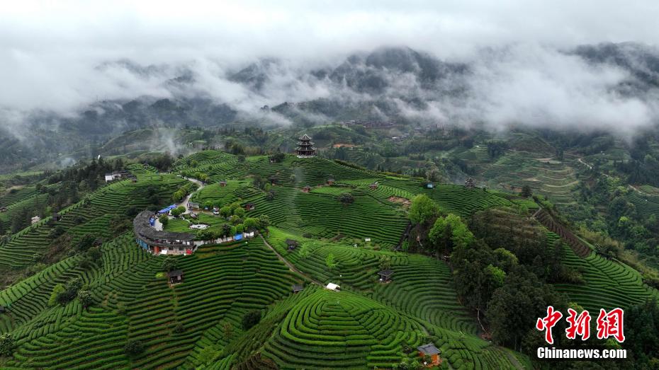 4月6日,一場大雨過后,廣西三江侗族自治縣八江鎮(zhèn)布央村仙人山茶園云霧繚繞,與茶園里的特色廊亭相互映襯,美如仙境。近年來,三江縣依托良好生態(tài)發(fā)展茶產(chǎn)業(yè),著力將“茶資源”轉(zhuǎn)化為“茶經(jīng)濟”,目前全縣茶葉種植面積達21.5萬畝,綜合年產(chǎn)值86億元人民幣,茶產(chǎn)業(yè)成為侗鄉(xiāng)民眾增收致富的“綠色銀行”。龔普康 攝