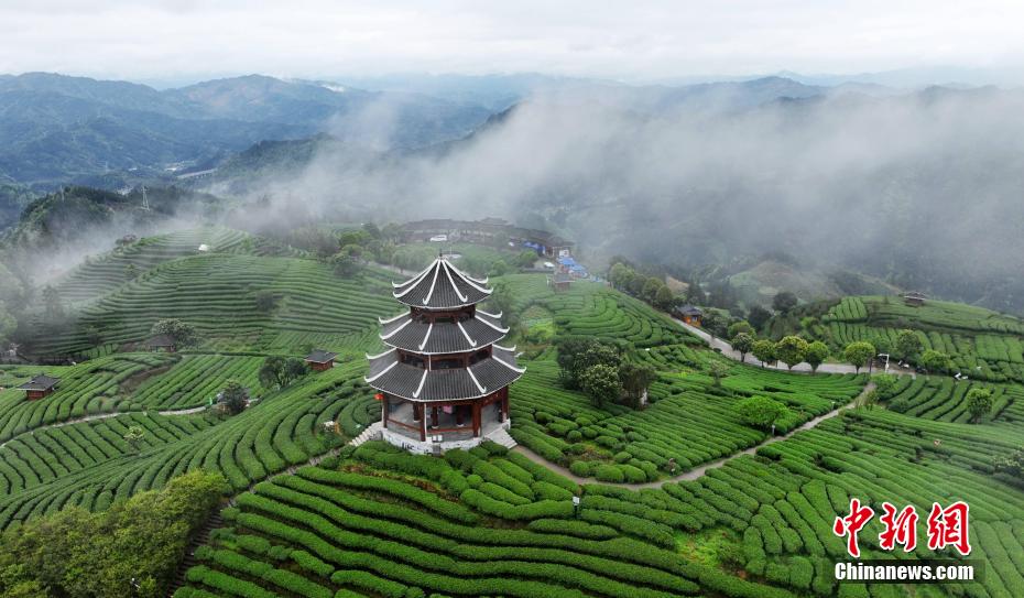 4月6日,廣西三江侗族自治縣八江鎮(zhèn)布央村仙人山茶園云霧繚繞,宛如仙境。龔普康 攝