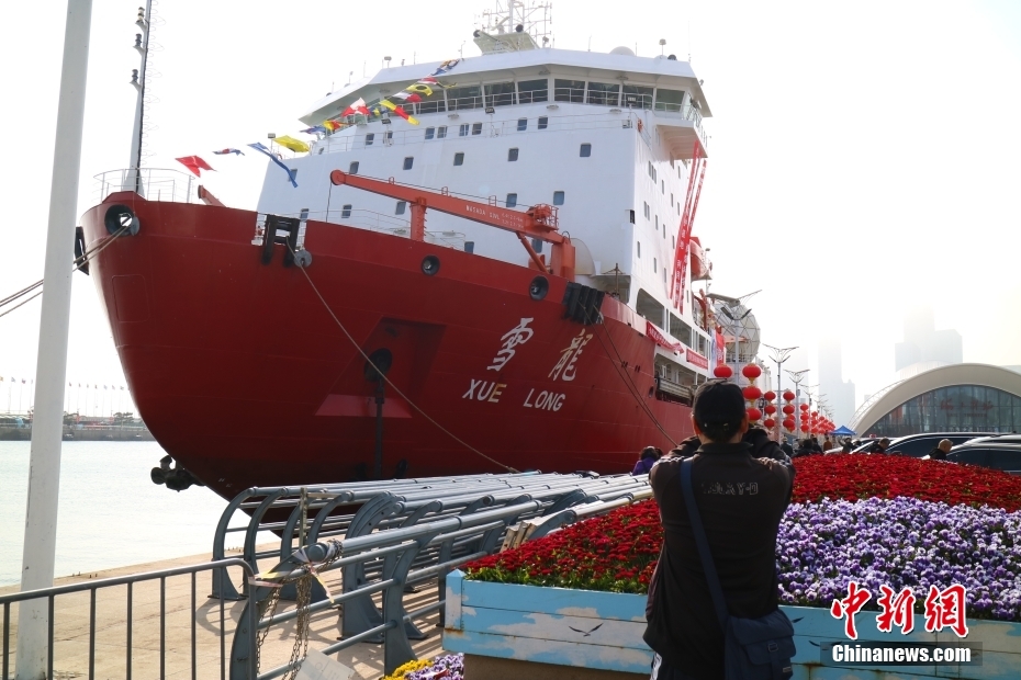 4月11日,民眾近距離拍攝“雪龍”號極地考察船。當日,“雪龍”號極地考察船在停靠山東青島后迎來首個開放日,供民眾參觀!把垺碧枠O地考察船于4月10日返回國內(nèi)并停靠青島奧帆基地碼頭,標志著中國第40次南極考察圓滿結束。中新社發(fā) 王宇軒 攝