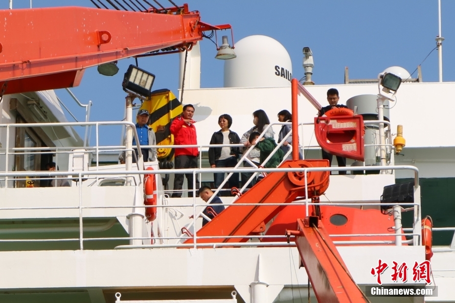 4月11日,民眾近距離拍攝“雪龍”號極地考察船。當日,“雪龍”號極地考察船在?可綎|青島后迎來首個開放日,供民眾參觀!把垺碧枠O地考察船于4月10日返回國內(nèi)并?壳鄭u奧帆基地碼頭,標志著中國第40次南極考察圓滿結(jié)束。中新社發(fā) 王宇軒 攝