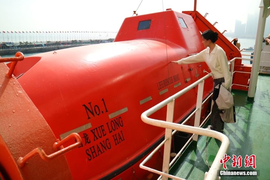 4月11日,民眾近距離拍攝“雪龍”號極地考察船。當日,“雪龍”號極地考察船在?可綎|青島后迎來首個開放日,供民眾參觀!把垺碧枠O地考察船于4月10日返回國內(nèi)并?壳鄭u奧帆基地碼頭,標志著中國第40次南極考察圓滿結(jié)束。中新社發(fā) 王宇軒 攝