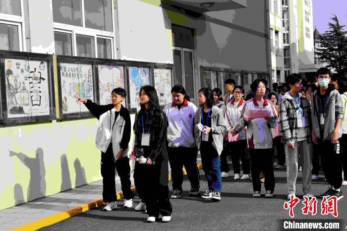 香港青年與青島第十七中學(xué)的學(xué)生一起參觀校園。崔冬妮 攝