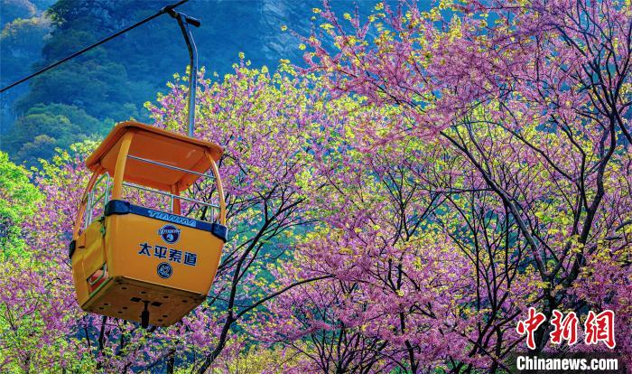 纜車點綴在紫荊花海中。太平國家森林公園供圖