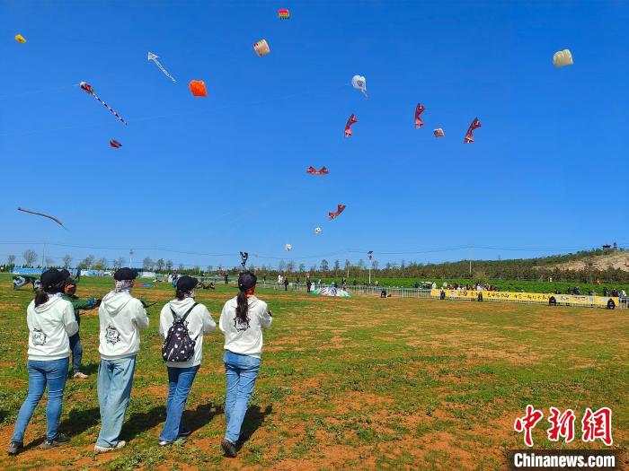 4月20日,在第20屆世界風(fēng)箏錦標(biāo)賽暨萬人風(fēng)箏放飛活動現(xiàn)場,來自大連的立風(fēng)特技風(fēng)箏隊(duì)正在操作四線風(fēng)箏。王采怡攝