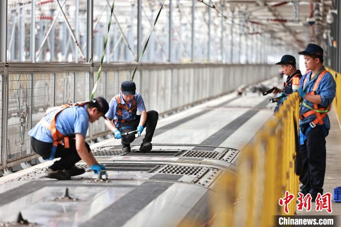 圖為檢修人員正在檢修動(dòng)車組列車。蘇志剛 攝