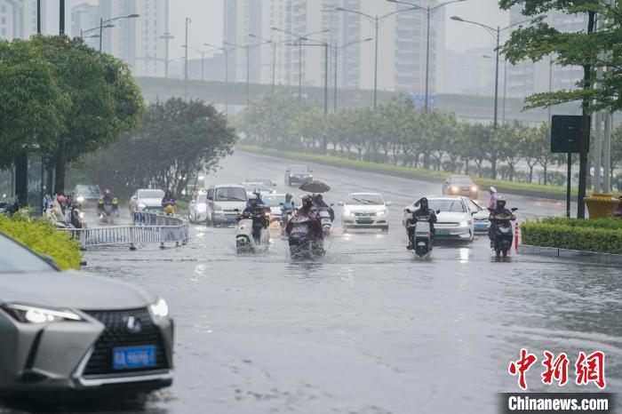 5月8日,強降雨天氣影響廣西南寧,部分城區(qū)出現(xiàn)積水內(nèi)澇。南寧氣象臺8日10時40分將暴雨橙色預(yù)警信號提升為紅色,8時以來南寧市西鄉(xiāng)塘區(qū)壇洛鎮(zhèn)、良慶區(qū)那馬鎮(zhèn)已出現(xiàn)局地強降雨,預(yù)計未來3小時南寧城區(qū)大部仍將有40-70毫米,局地80毫米以上的強降雨,并伴有雷電、短時大風(fēng)、局地冰雹,山洪地質(zhì)災(zāi)害氣象風(fēng)險和城區(qū)積澇氣象風(fēng)險很大,提醒民眾注意防范。車輛通過一處積水路段。陳冠言 攝