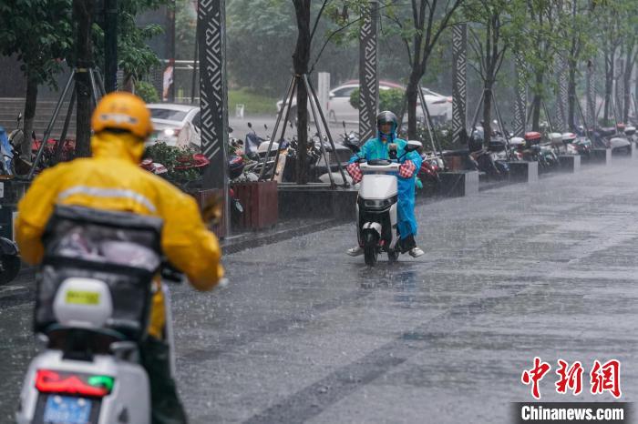 外賣(mài)騎手在雨中送餐。陳冠言 攝