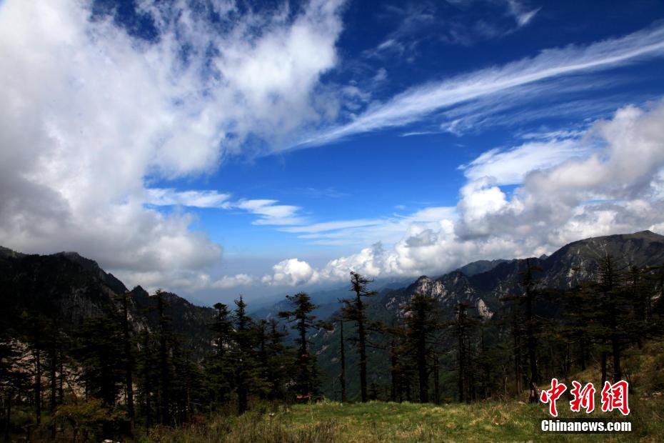 綿延秦嶺與藍天白云交相輝映。朱雀國家森林公園 供圖