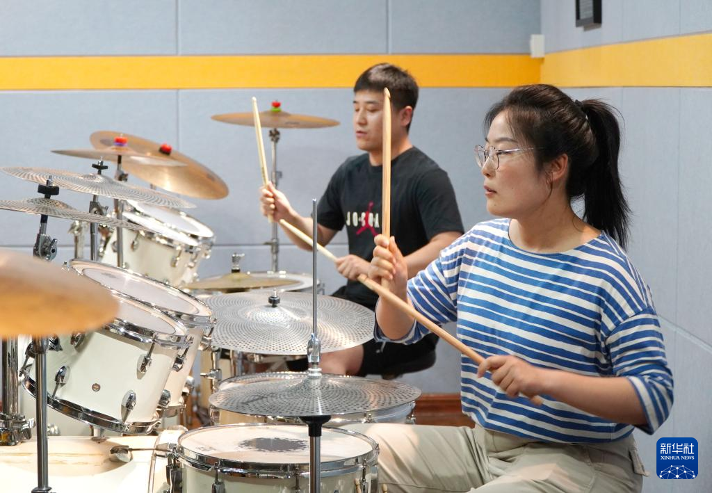 5月10日,在位于山東省淄博市張店區(qū)和平街道的青年夜校,學(xué)員在學(xué)習(xí)架子鼓。