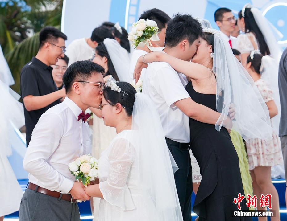 5月19日,世界愛(ài)情角520鄉(xiāng)村振興音樂(lè)季活動(dòng)在廣東湛江徐聞縣角尾鄉(xiāng)舉行,百對(duì)新人在現(xiàn)場(chǎng)舉行集體婚禮儀式。本次活動(dòng)由共青團(tuán)中央青發(fā)部、共青團(tuán)廣東省委員會(huì)指導(dǎo)舉辦,以“世界愛(ài)情角 相愛(ài)最南端”為主題,聚焦助力“百千萬(wàn)工程”和綠美廣東生態(tài)建設(shè)領(lǐng)域成效,打造“南極村”特色文旅產(chǎn)業(yè),塑造“世界愛(ài)情角”文旅名片,進(jìn)一步豐富“鮮美湛江”文旅品牌體系。中新社發(fā) 許舒智 攝