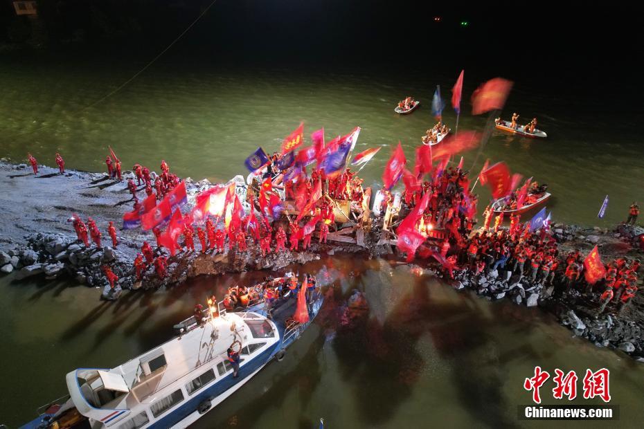 7月8日22時許,隨著決口兩端搶險救援隊伍的匯合,226米長的湖南岳陽市華容縣洞庭湖一線堤防決口完成封堵任務(wù),實現(xiàn)全堤合龍。圖為合龍成功。(無人機照片)[次頁標(biāo)題= 導(dǎo)航短標(biāo)題=]