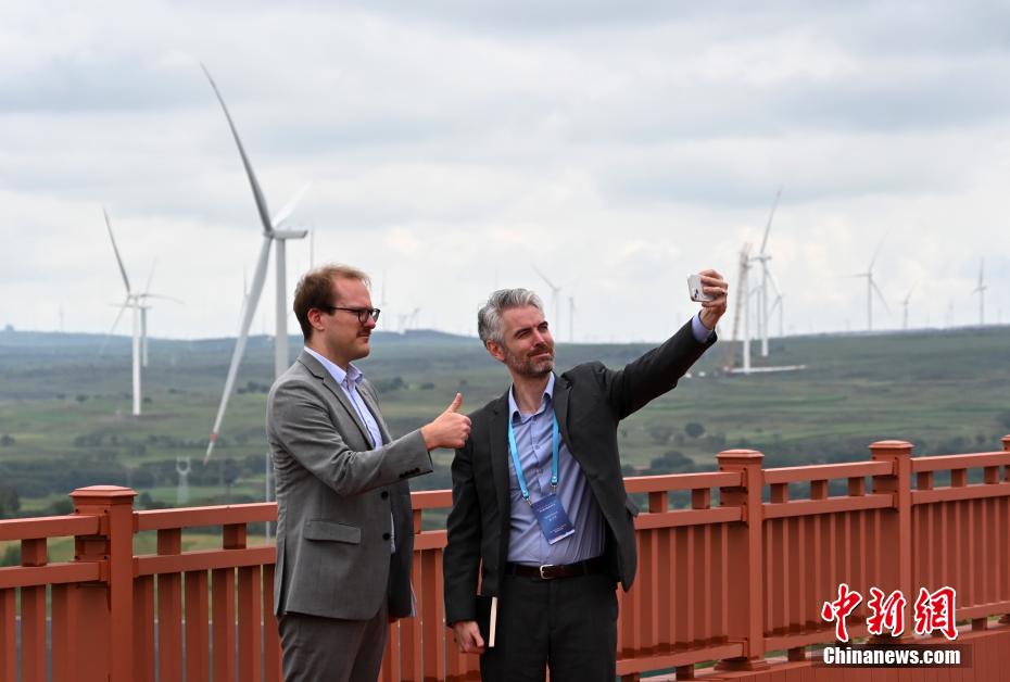 8月21日,中國外交部舉辦的“駐華使節(jié)河北行”活動(dòng)繼續(xù)深入河北張家口,來自23個(gè)國家的駐華使節(jié)、外交官和國際組織駐華代表先后走訪了國家風(fēng)光儲(chǔ)輸示范基地和浙江吉利汽車有限公司張家口分公司,通過實(shí)地考察,近距離感受中國新能源產(chǎn)業(yè)發(fā)展成就。圖為使節(jié)參觀國家風(fēng)光儲(chǔ)輸示范基地自拍留念。中新社記者 翟羽佳 攝