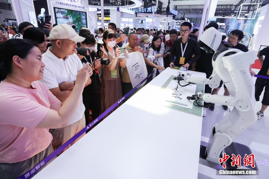 機(jī)器人展示書法。中新社記者 張祥毅 攝