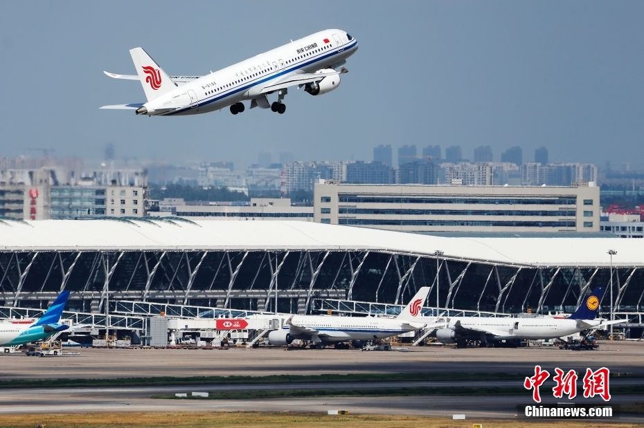8月29日,一架編號(hào)為B-919X的國(guó)航首架C919國(guó)產(chǎn)大型客機(jī)從上海浦東國(guó)際機(jī)場(chǎng)啟航飛往北京首都國(guó)際機(jī)場(chǎng)。8月28日晚,中國(guó)國(guó)際航空公司和中國(guó)南方航空公司在中國(guó)商飛總裝制造中心浦東基地同時(shí)接收首架C919國(guó)產(chǎn)大型客機(jī)。這標(biāo)志著C919國(guó)產(chǎn)大型客機(jī)即將開(kāi)啟多用戶運(yùn)營(yíng)新階段。中新社記者 殷立勤 攝