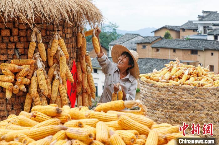 9月22日,村民正在土樓前晾曬農作物。當日是秋分節(jié)氣,也是中國農民豐收節(jié),在安徽省黃山市歙縣深渡鎮(zhèn)陽產村,村民利用晴好天氣將收獲歸倉的紅辣椒、玉米、山核桃等農作物晾曬在土樓前,五彩斑斕的農作物與鱗次櫛比的土樓交相輝映,描繪出一幅山村土樓豐收“曬秋”圖。施亞磊 攝