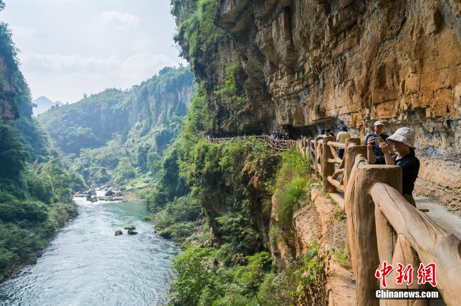 興義世界地質(zhì)公園馬嶺河峽谷吸引游客游玩(2)