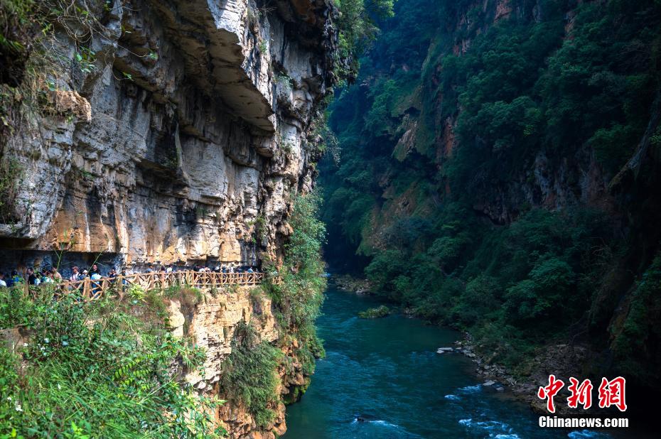 興義世界地質(zhì)公園馬嶺河峽谷吸引游客游玩(6)