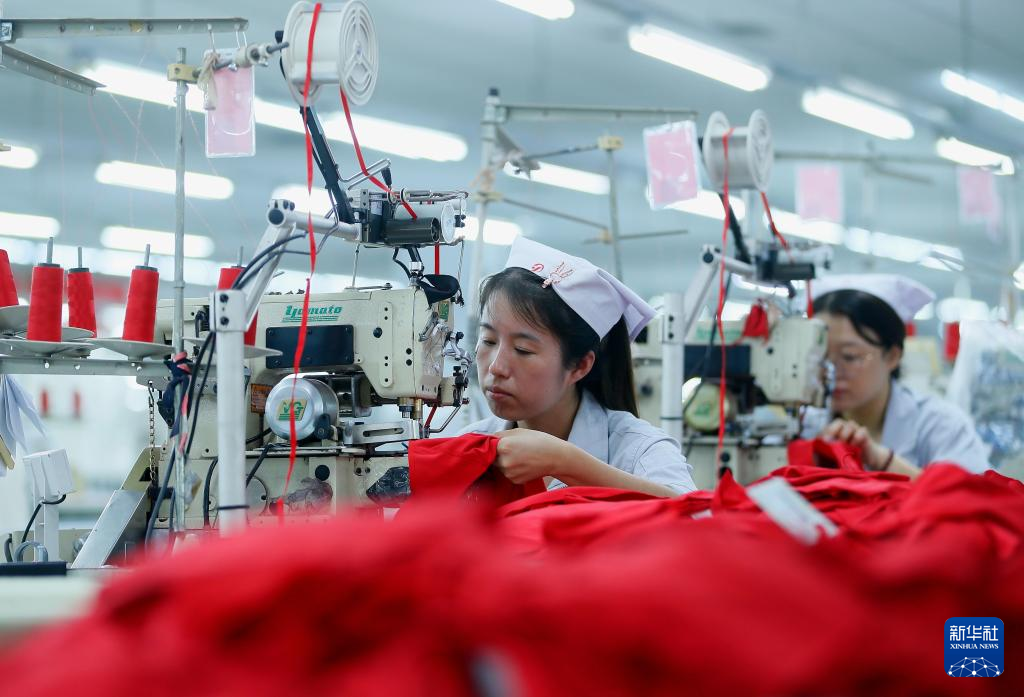 今年以來(lái),山東省青島市即墨區(qū)依托傳統(tǒng)紡織服裝產(chǎn)業(yè)優(yōu)勢(shì),鼓勵(lì)企業(yè)加大新技術(shù)、新工藝和新產(chǎn)品的研發(fā)投入力度,推動(dòng)企業(yè)建設(shè)智能化生產(chǎn)線,促進(jìn)紡織企業(yè)高質(zhì)量發(fā)展。目前,當(dāng)?shù)丶徔椃b企業(yè)外貿(mào)訂單充足,企業(yè)產(chǎn)銷兩旺。新華社發(fā)(梁孝鵬攝)10月7日,山東省青島市即墨區(qū)龍山街道一家服裝企業(yè)的工人在生產(chǎn)出口到海外市場(chǎng)的成衣產(chǎn)品。
