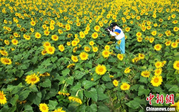 近日,在廣西環(huán)江毛南族自治縣龍巖鄉(xiāng)廣榮村龍道屯,連片的向日葵花競相綻放,美如畫卷。圖為盛開的向日葵。譚華標 攝