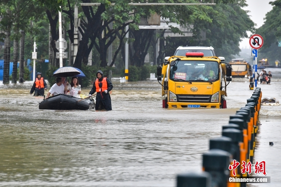 10月30日,海南省瓊海市銀海路內(nèi)澇嚴(yán)重,救援人員用橡皮艇轉(zhuǎn)運(yùn)受困民眾。連日來,受今年第20號臺(tái)風(fēng)“潭美”殘渦和冷空氣影響,海南島大部分地區(qū)出現(xiàn)暴雨到大暴雨、局地特大暴雨,萬泉河上游牛路嶺水庫持續(xù)泄洪,洪峰導(dǎo)致瓊海主城區(qū)、萬泉河沿岸各鎮(zhèn)等低洼路段區(qū)域漫水受淹。中新社記者 駱云飛 攝