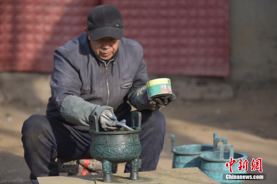 新年將至,河北省石家莊市靈壽縣中山青銅工藝廠的工人們正忙著制作各種青銅器工藝品,以滿足客戶需求。該工藝廠青銅器制作工藝歷史悠久,是河北省級非物質(zhì)文化遺產(chǎn)代表性項目,采用失蠟法制作工藝,通過雕刻模型、翻硅膠模、灌蠟型、制殼、澆筑、燒制、打磨、上蠟等工序,制作出各種精美青銅器工藝品,深受廣大收藏愛好者青睞。圖為12月11日,工人正在打蠟。白云飛 攝