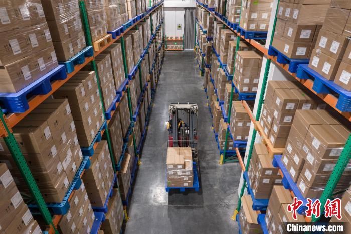 12月24日,青島市李滄區(qū)一醫(yī)藥物流中心內(nèi),叉車司機將藥品進行出庫作業(yè)。近年來,當?shù)亓⒆憬煌屑~優(yōu)勢,建成了集聯(lián)運、倉儲配送、產(chǎn)品包裝、加工檢測于一體的現(xiàn)代醫(yī)藥物流中心,實現(xiàn)全年吞吐量約120萬件,為山東省各醫(yī)療機構(gòu)供應(yīng)藥品。張鷹 攝