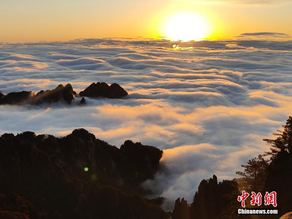 3月4日,安徽黃山風(fēng)景區(qū)雨后放晴,現(xiàn)絕美日出、云海景觀。晨曦初綻,金色光輝輕柔灑落于連綿起伏的山巒上,云海如同洶涌澎湃的波濤,與絢麗朝霞交相輝映,共同勾勒出一幅動(dòng)人心弦的絕美畫(huà)卷。徐高云 攝