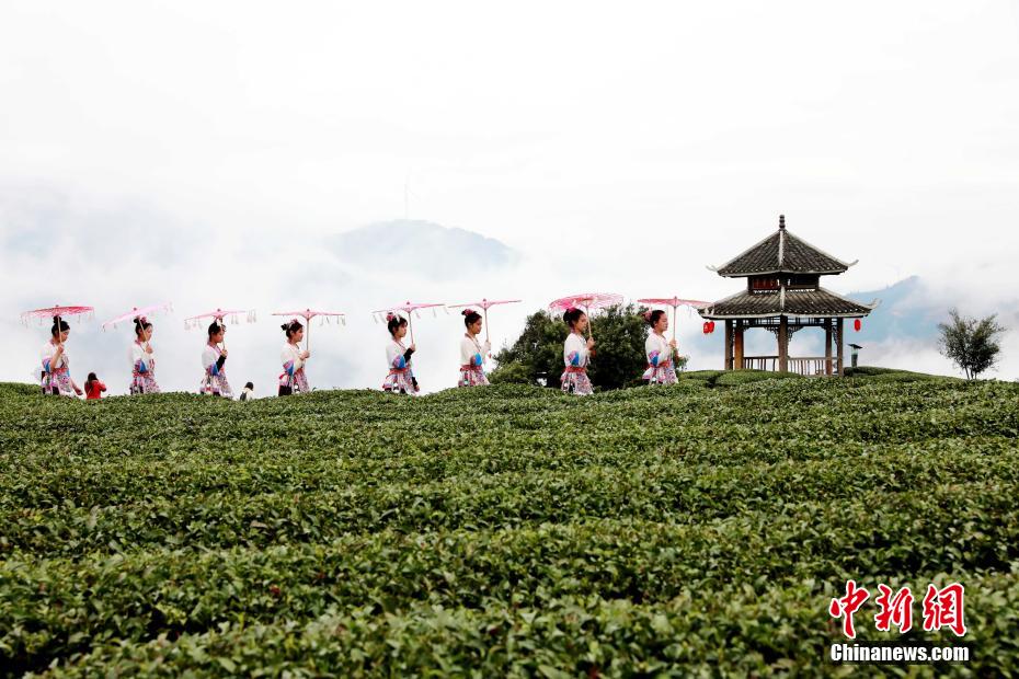 3月9日,一場春雨過后,廣西三江侗族自治縣八江鎮(zhèn)布央村仙人山茶園云霧繚繞,美若仙境。游人漫步其間,仿佛置身如夢如幻的詩意畫卷。圖為雨后茶園美景。龔普康 攝