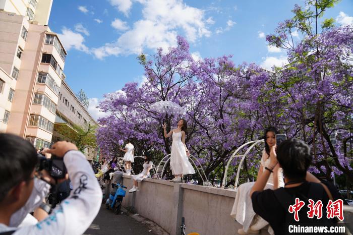 昆明藍(lán)花楹盛放 民眾共赴浪漫花約(2)