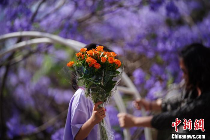 昆明藍(lán)花楹盛放 民眾共赴浪漫花約(4)
