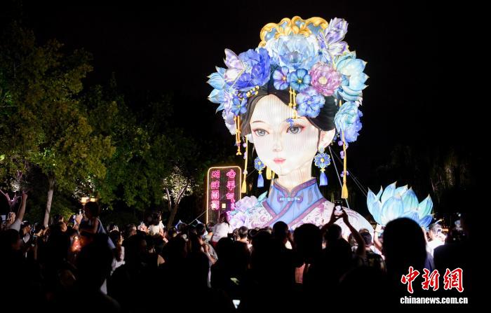 圖為游客為即將熄燈的老版“湖畔雨荷”花燈送別。中新社記者 張勇 攝