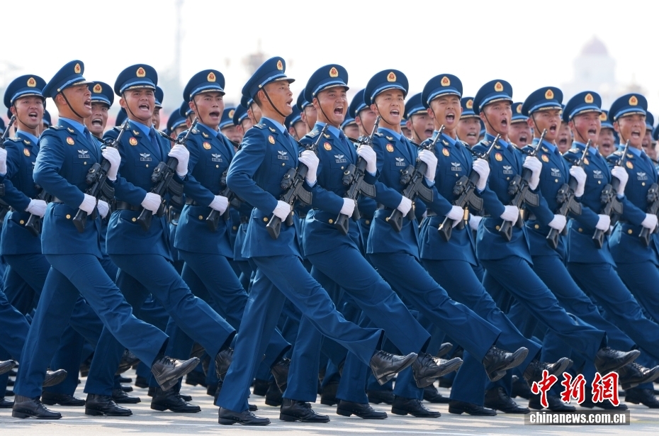 9月3日,紀(jì)念中國人民抗日戰(zhàn)爭暨世界反法西斯戰(zhàn)爭勝利80周年大會在北京隆重舉行。圖為空軍方隊通過天安門廣場。中新社記者 張煒 攝