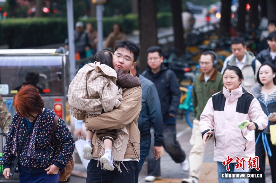 10月17日,受寒潮天氣影響,北京氣溫明顯下降。圖為市民在街頭出行。中新社記者 賈天勇 攝