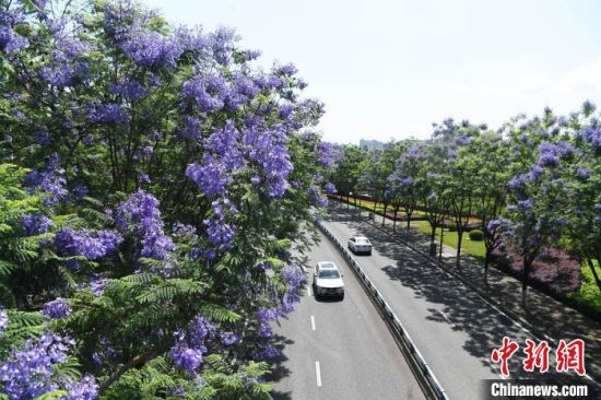 重慶街頭藍(lán)花楹迎盛開期 藍(lán)紫色的花朵顯得格外艷麗