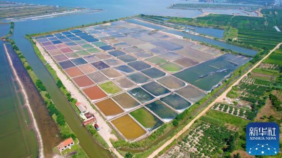 這是8月26日拍攝的山東省榮成市港西鎮(zhèn)海邊的一處鹽田(無人機(jī)照片)。