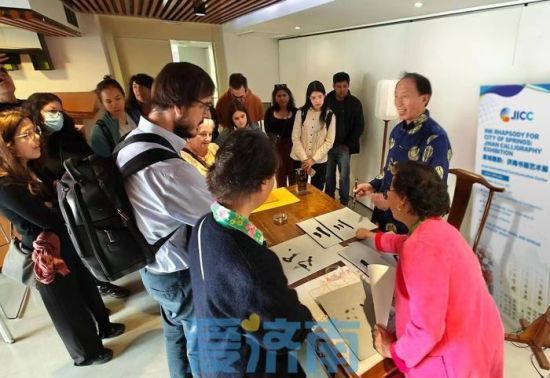 在學(xué)習(xí)書法知識的過程中,大家也了解了濟南的風(fēng)土民情和七十二名泉,并用毛筆書寫濟南名士李清照和辛棄疾的詩詞。參加本次活動的青少年表示,希望未來有機會來到中國,更深入地體驗、學(xué)習(xí)中國的書法藝術(shù),感受濟南豐富的非遺文化。