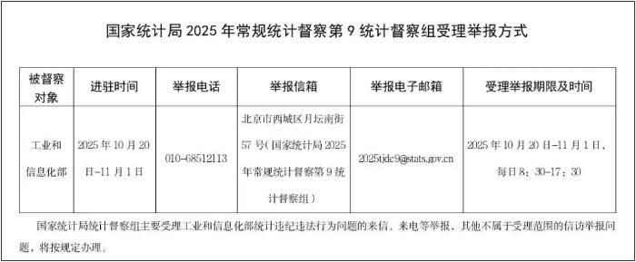 第9統(tǒng)計(jì)督察組進(jìn)駐工業(yè)和信息化部