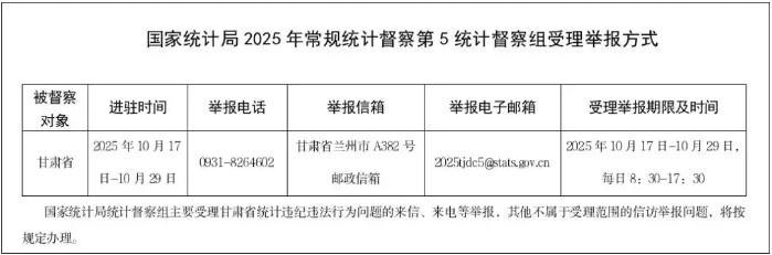 第5統(tǒng)計(jì)督察組進(jìn)駐甘肅省