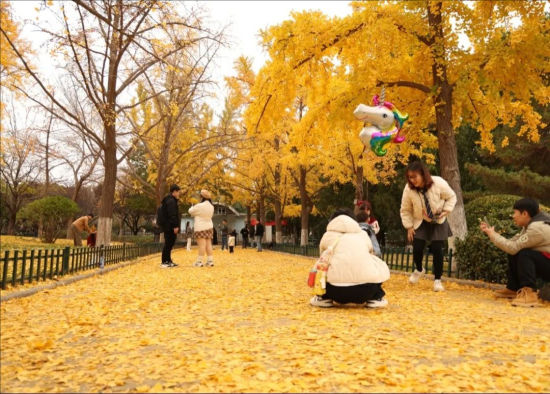 動物園的秋景滿是溫馨活力,熊山旁的銀杏落葉鋪成“金色地毯”,孩子們盡情嬉戲,情侶們牽手漫步,暖陽與金黃映襯下,一幅幅生活氣息十足的畫面,為秋日添了幾分柔情。