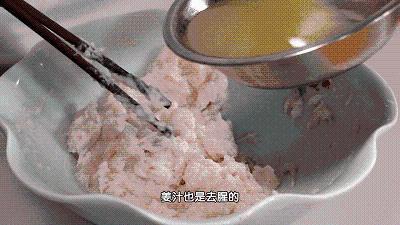 2、加花椒水和姜汁:鲅魚腥味較大,除了片魚肉時將魚皮除凈,調(diào)肉餡加花椒水和姜汁是關(guān)鍵。既有效去腥,還能使魚肉口感不干不柴。