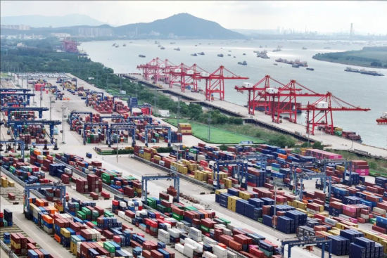 2024年9月19日拍攝的長(zhǎng)江下游南京龍?zhí)陡圻M(jìn)出口集裝箱碼頭。(資料圖)中新社記者 泱波 攝