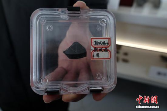 12月11日,在山東濟南,考古人員展示大明湖西南遺址出土的蛋殼陶片,上面刻有精美紋飾。中新社記者 趙曉 攝