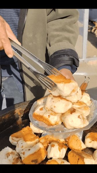 煙臺(tái)福山大集的“面魚(yú)”炸得金黃蓬松,