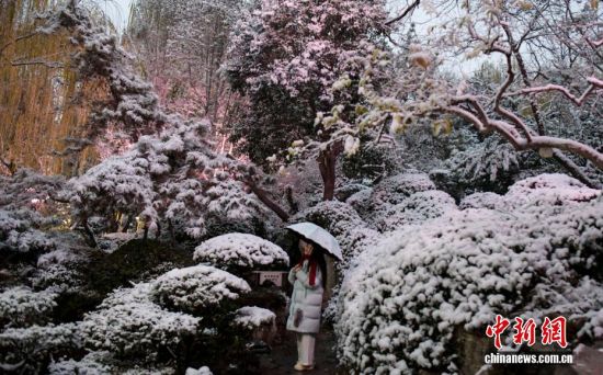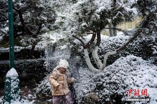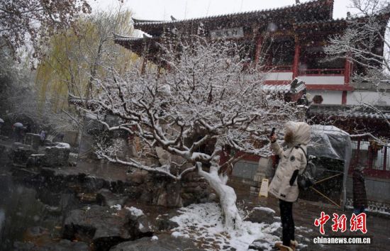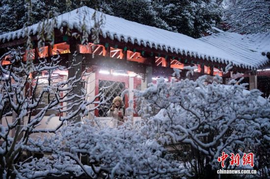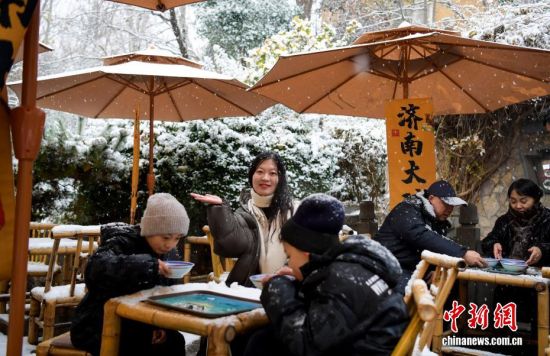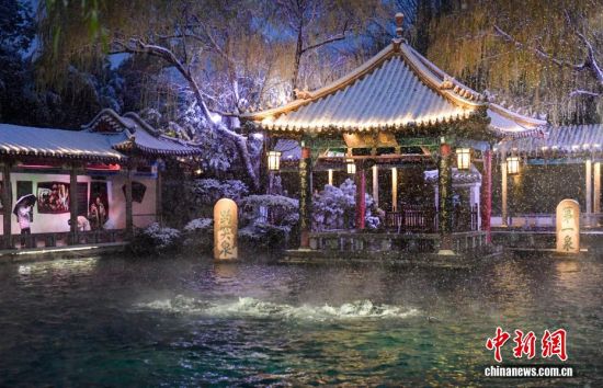 12月12日,游客在濟(jì)南趵突泉公園里賞雪。當(dāng)日,山東濟(jì)南迎來(lái)2025年入冬以來(lái)首場(chǎng)降雪,濟(jì)南趵突泉公園里白雪皚皚,美不勝收。中新社記者 張勇 攝