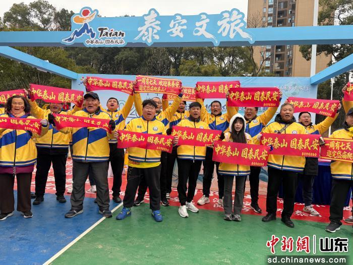 這不僅是球場上的較量,更是一場跨越山河的文旅相擁。賽場內(nèi),泰安遠(yuǎn)征球迷的吶喊聲浪響徹永州體育場,競技激情燃動全場;賽場外,泰安文旅的熱忱同樣無處不在!耙恢苡衅咛欤瑲g迎來泰安,逛完岱廟爬泰山。”泰安文旅走進(jìn)CMG群眾足球邀請賽主題推廣活動早早便攢足人氣。泰安城市吉祥物“敢敢”“當(dāng)當(dāng)”圈粉無數(shù),成了現(xiàn)場新晉人氣打卡點;泰山“五岳獨尊”巨型打卡墻前人頭攢動,眾人滿懷對五岳之首的向往,爭相駐足合影,F(xiàn)場的泰山助力登山機(jī)器人,讓球迷排隊體驗“瞬間登頂泰山”的趣味;互動機(jī)器狗與小朋友嬉戲玩鬧,妥妥化身全場最吸睛的“顯眼包”,一眾泰安文旅“黑科技”輪番亮相,讓人眼前一亮。泰安日報社記者帶著泰安煎餅給永州球迷品嘗,泰安煎餅卷上永州鹵味,是一種不一樣的美食碰撞。