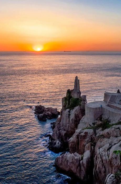 成山頭地處威海榮成,是中國(guó)大陸海岸線的最東端,素有“天盡頭”之稱(chēng),這里是中國(guó)最早看見(jiàn)海上日出的地方,是山東海岸線上極具特色的自然地理標(biāo)志。日出時(shí)分,一輪紅日從海平面緩緩升起,霞光萬(wàn)丈,染紅海面,景色壯觀。