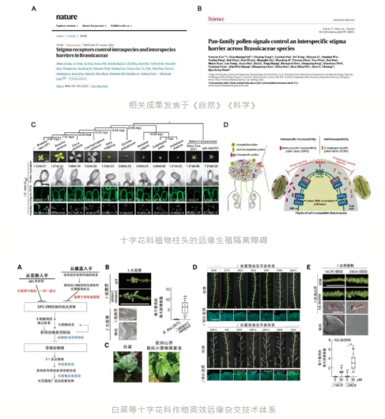 遠(yuǎn)緣雜交育種是種質(zhì)創(chuàng)新的重要途徑,但生殖隔離是遠(yuǎn)緣雜交育種的“卡脖子”難題,極大程度上限制了遠(yuǎn)緣物種中優(yōu)異基因資源的開發(fā)利用。中國科協(xié)“2025十大前沿科學(xué)問題”指出,“如何利用作物野生近緣種提升栽培種抗逆特性”已成為當(dāng)前農(nóng)業(yè)科技領(lǐng)域亟待突破的關(guān)鍵難題。該成果在白菜等十字花科植物中發(fā)現(xiàn)了雌蕊柱頭中用于識別遠(yuǎn)緣花粉的受體,鑒定了遠(yuǎn)緣花粉觸發(fā)“隔離”的信號,并系統(tǒng)揭示了其生殖隔離的普遍規(guī)律。利用該成果已建立起一套高效、精準(zhǔn)的遠(yuǎn)緣雜交技術(shù)體系,正在白菜、甘藍(lán)、蘿卜、油菜等十字花科蔬菜和油料作物育種中應(yīng)用。