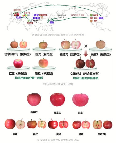 蘋果是我國落葉果樹的第一大樹種,是推動(dòng)農(nóng)民增收與鄉(xiāng)村振興的支柱產(chǎn)業(yè)。該成果針對蘋果產(chǎn)業(yè)發(fā)展中的瓶頸問題,明確了新疆是蘋果的原始起源中心和天然種質(zhì)庫,挖掘創(chuàng)制骨干種質(zhì)17份;創(chuàng)建了高效育種技術(shù)體系,育成紅肉蘋果‘美紅’等多樣化新品種13個(gè);研發(fā)了優(yōu)質(zhì)高效配套栽培技術(shù)。成果在山東、陜西等蘋果主產(chǎn)區(qū)累計(jì)推廣應(yīng)用2400余萬畝,為推動(dòng)我國蘋果產(chǎn)業(yè)提質(zhì)增效高質(zhì)量發(fā)展做出了重要貢獻(xiàn)。