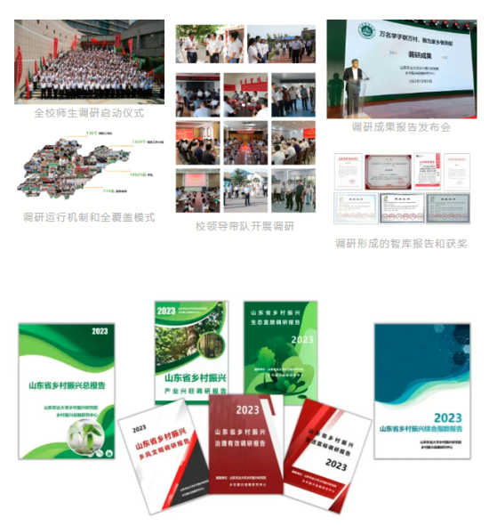 為全面服務(wù)鄉(xiāng)村振興齊魯樣板打造,學(xué)校開展“萬名學(xué)子聯(lián)萬村 我為家鄉(xiāng)做貢獻(xiàn)”大調(diào)研,萬余名師生深入鄉(xiāng)村一線,對山東省55077個(gè)行政村的全覆蓋調(diào)查模式,全面構(gòu)建全省鄉(xiāng)村振興多維度數(shù)據(jù)庫,最終形成“1+5+1”系列山東省鄉(xiāng)村振興發(fā)展報(bào)告。報(bào)告內(nèi)容涵蓋鄉(xiāng)村振興五個(gè)方面重點(diǎn)任務(wù),突出山東重點(diǎn)和特色,為“三農(nóng)”研究提供了大規(guī)模、高精度的實(shí)證支撐,為打造鄉(xiāng)村振興齊魯樣板提供了扎實(shí)的決策依據(jù)。成果多次獲省部級領(lǐng)導(dǎo)肯定性批示、農(nóng)業(yè)農(nóng)村廳高度肯定,獲評智庫研究精品成果獎(jiǎng),部分建議被直接納入相關(guān)政策,充分發(fā)揮了高校智庫主動(dòng)服務(wù)國家重大戰(zhàn)略和地方經(jīng)濟(jì)社會發(fā)展的決策咨詢能力。