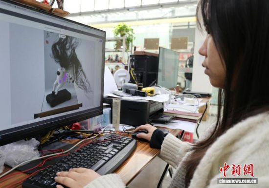 圖為設(shè)計(jì)師在為“馬彪彪”設(shè)計(jì)造型。趙曉 攝